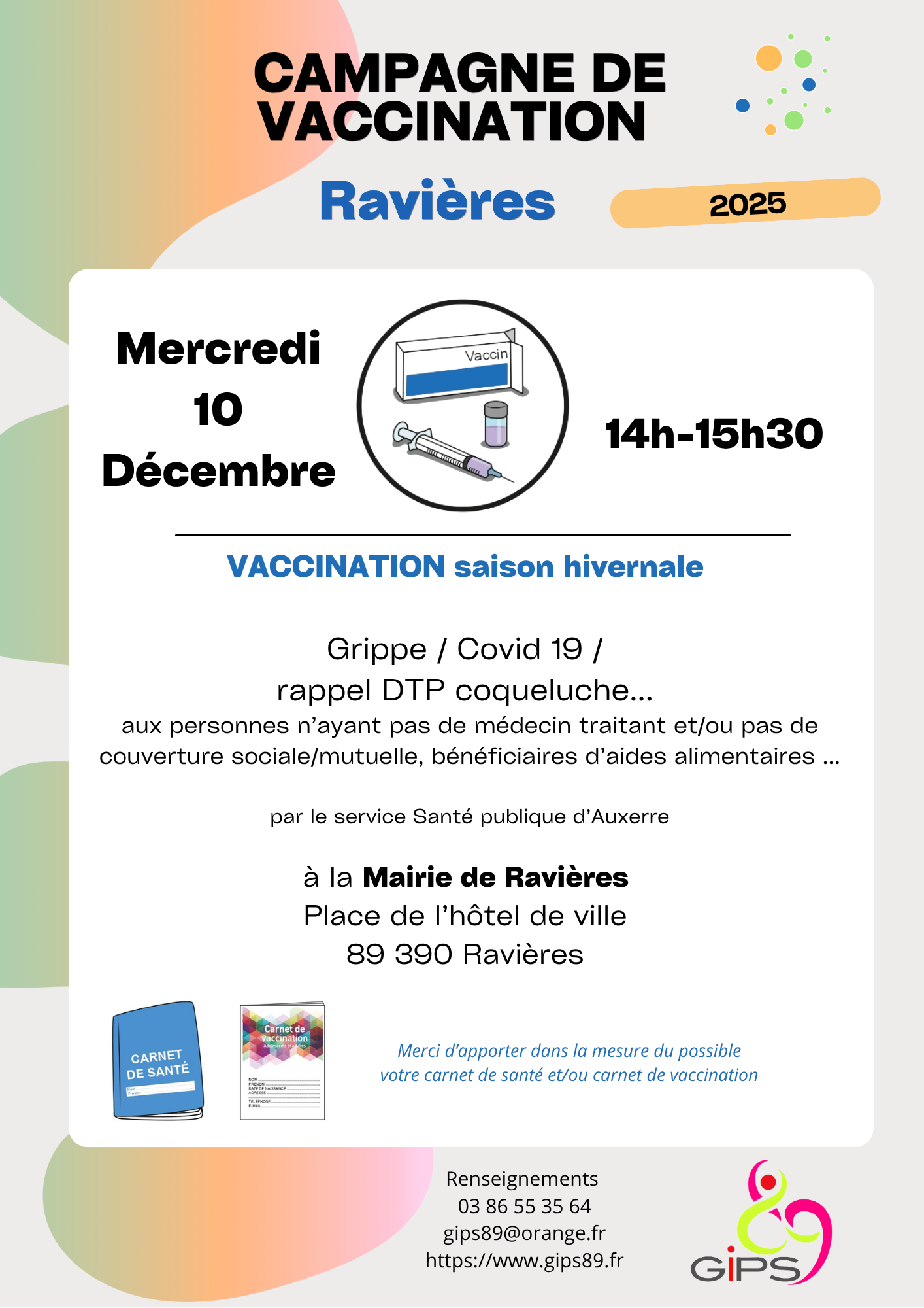 Campagne de vaccination hivernaleÀ l’approche de l’hiver, le service Santé publique d’Auxerre organise deux rendez-vous dédiés à la vaccination afin de renforcer la protection des habitants les plus vulnérables.