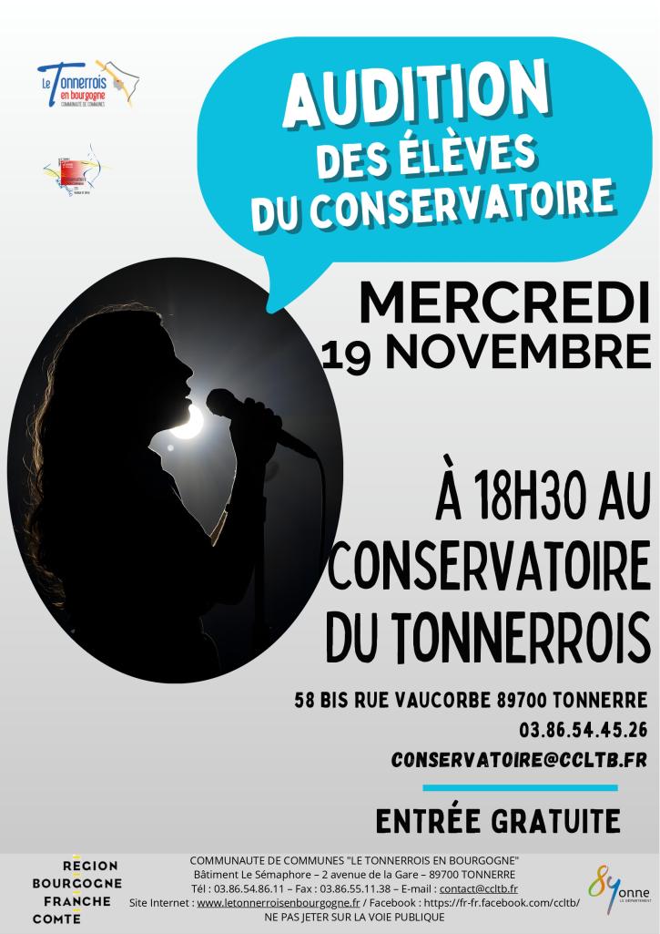 Venez découvrir les performances des élèves du Conservatoire du Tonnerrois lors de cette audition ouverte au public. Une belle occasion de soutenir les jeunes talents et d'apprécier des interprétations musicales variées.