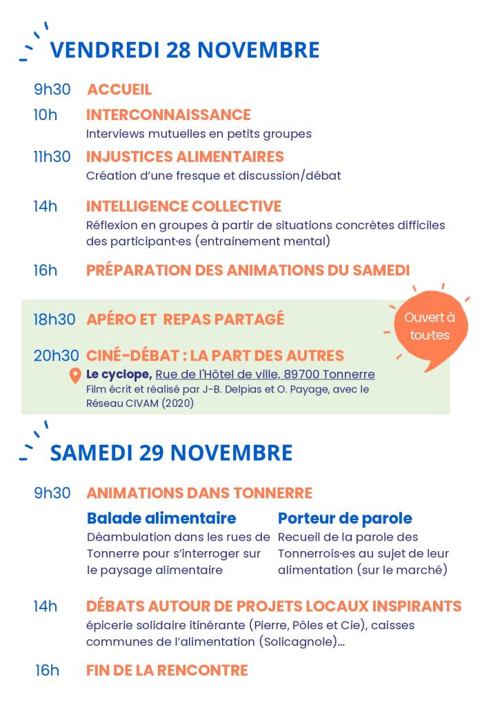 La rencontre est ouverte à tous, avec une priorité aux groupes membres de Carav'alim.