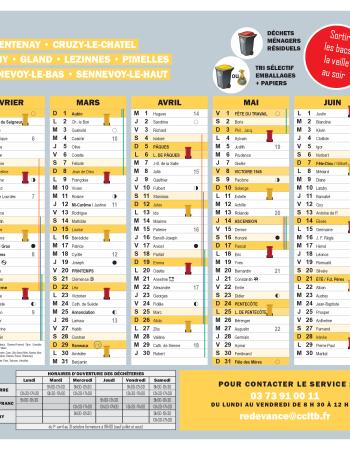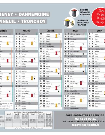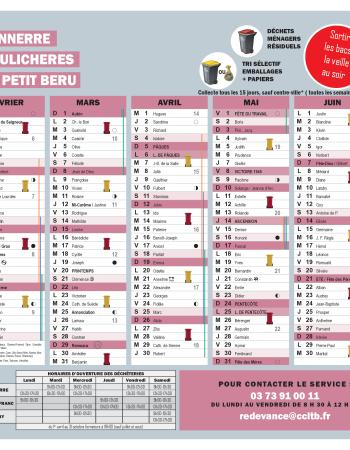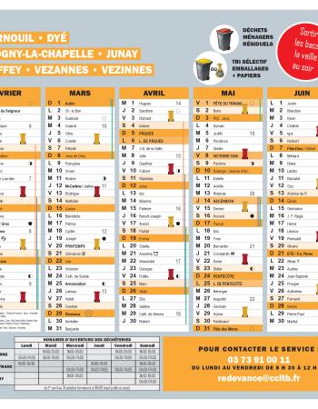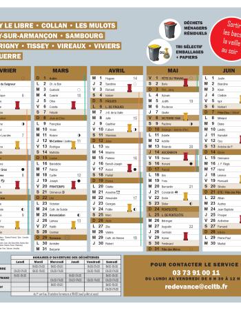 Un calendrier, téléchargeable ci-dessous ou disponible dans votre commune et à la communauté de communes, vous précise les jours de passage du camion.
