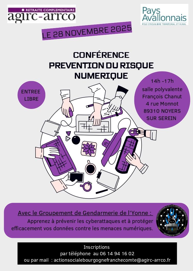Participez à une conférence sur la sécurité numérique et découvrez comment vous prémunir contre les menaces cyber. Le Groupement de Gendarmerie de l'Yonne sera présent pour expliquer les dangers actuels et partager des conseils pratiques pour protéger vos informations personnelles.