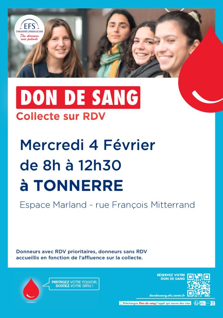 L’Établissement Français du Sang vous invite à participer à une collecte de don du sang. En quelques minutes, vous pouvez sauver jusqu’à 3 vies.