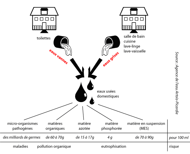 Il existe deux types d’eaux usées domestiques pour une habitation :