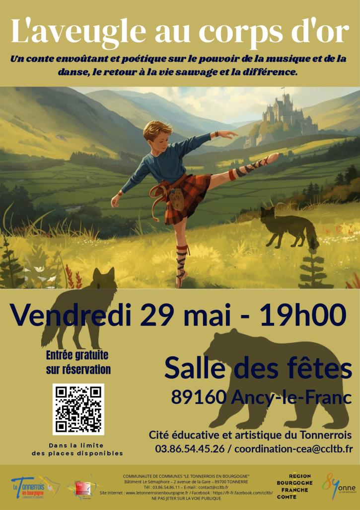 "Il était une fois dans les hautes terres d’Écosse, un royaume sans héritier. Mais un jour, le vœu du roi fut exaucé. L’enfant ne cria pas, mais ses pieds et ses mains dansaient, décrivant déjà, avec son corps, entrechats et arabesques. Son regard restait figé, l’enfant tant désiré était aveugle."