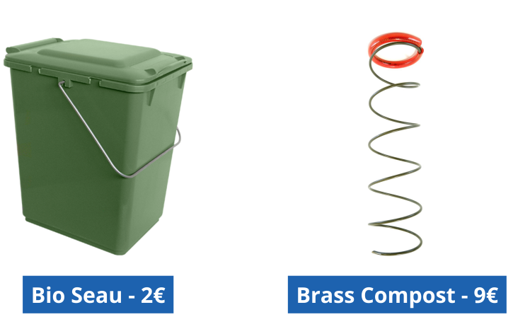 Vous trouverez également à la vente un bio seau (à 2€) et un brass compost (à 9€). Vous pouvez en faire la demande au service.