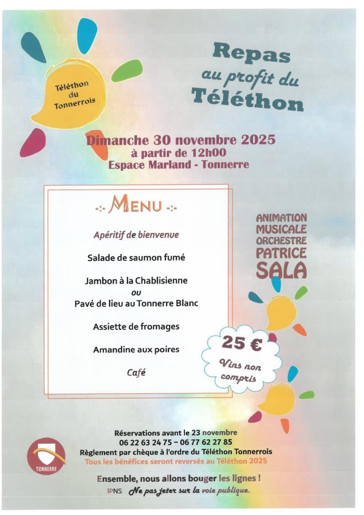 - Règlement : Par chèque à l'ordre du Téléthon Tonnerrois