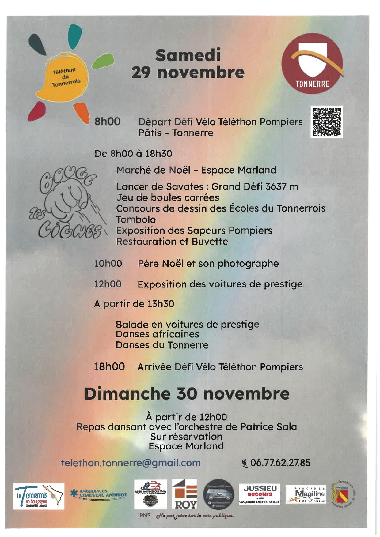 - 18h00 : Arrivée du défi élo Téléthon Pompiers