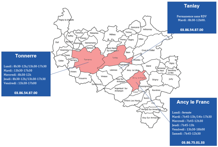 | France Rénov' | Conseils sur les économies d'énergies, les énergies renouvelables et les aides financières correspondantes | 3ème mardi matin de chaque moi sur rendez-vous au 03 86 72 16 16 | |